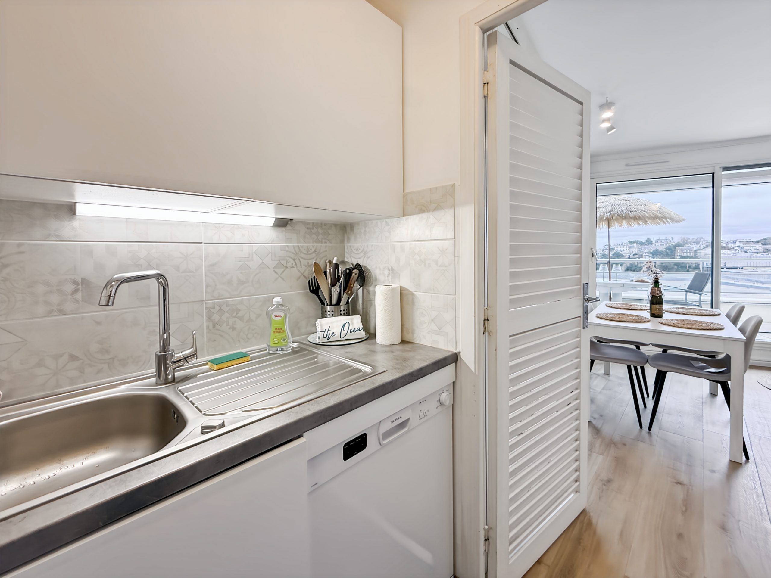 À l’extérieur, laissez-vous séduire par une terrasse panoramique au 10ᵉ et dernier étage, offrant une vue spectaculaire sur la plage de l’Écluse. Vous accédez directement à la plage par ascenseur. Vous bénéficiez d’une place de parking privative.