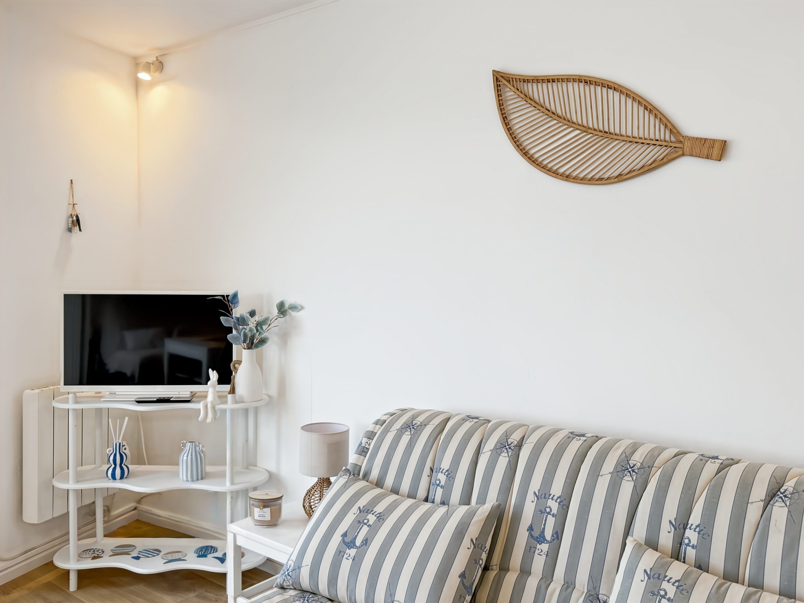 Vous serez séduit dès l’entrée par un salon spacieux et baigné de lumière, offrant une vue mer exceptionnelle. L’appartement peut accueillir jusqu’à quatre personnes grâce à ses deux canapés-lits, avec la possibilité de préserver l’intimité de chacun grâce à une porte accordéon séparant les espaces.