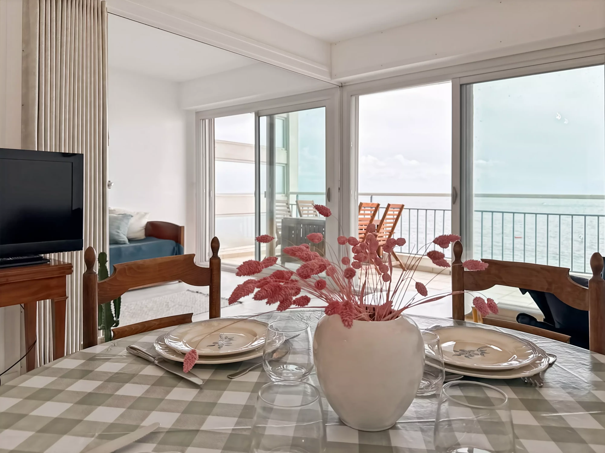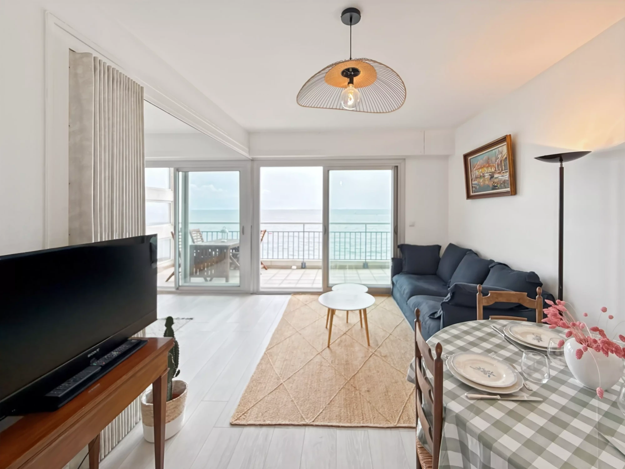 L’Océan est un appartement lumineux, face à la plage, les pieds dans l’eau, offrant un panorama exceptionnel sur la baie de La Baule.