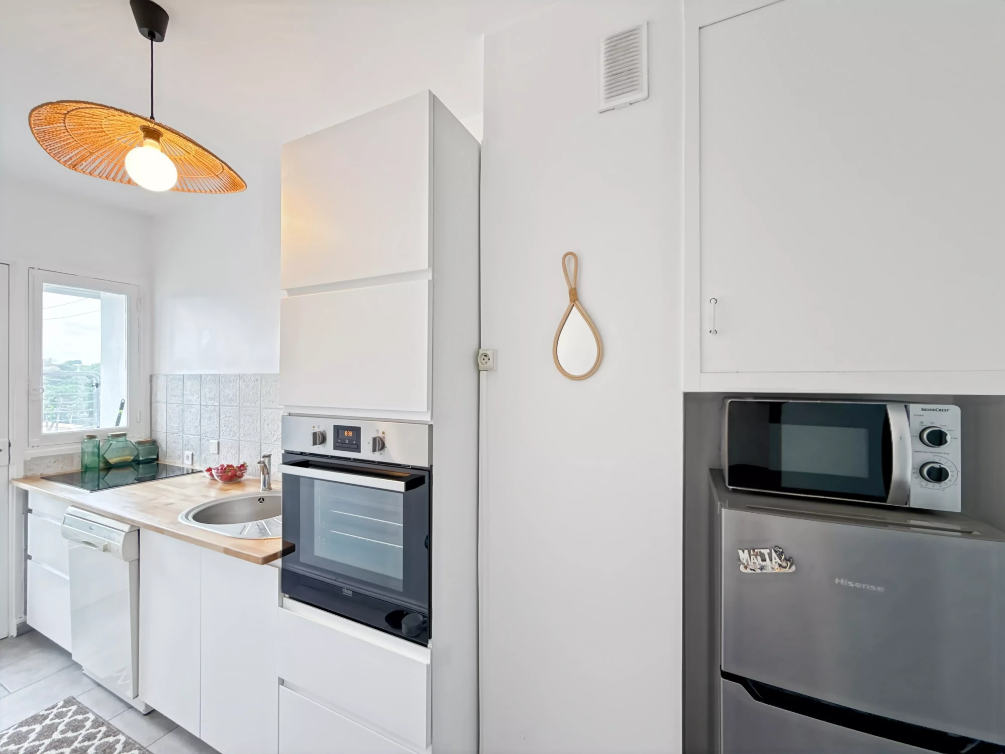 La cuisine, entièrement équipée, comprend plaques de cuisson, four, lave-vaisselle, machine à café, bouilloire, grille-pain et tous les ustensiles nécessaires pour préparer vos repas.